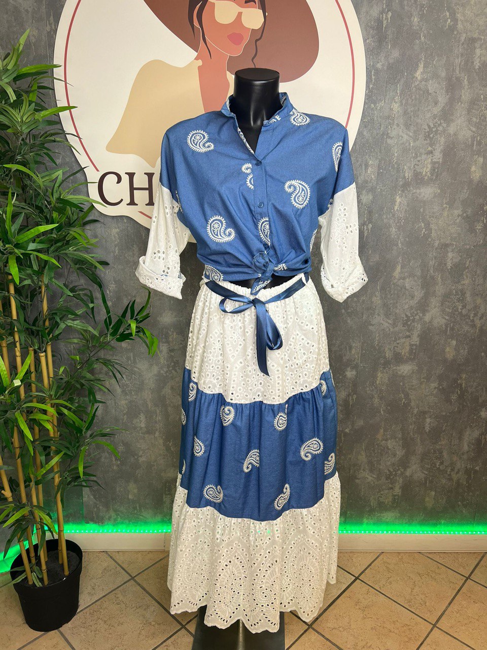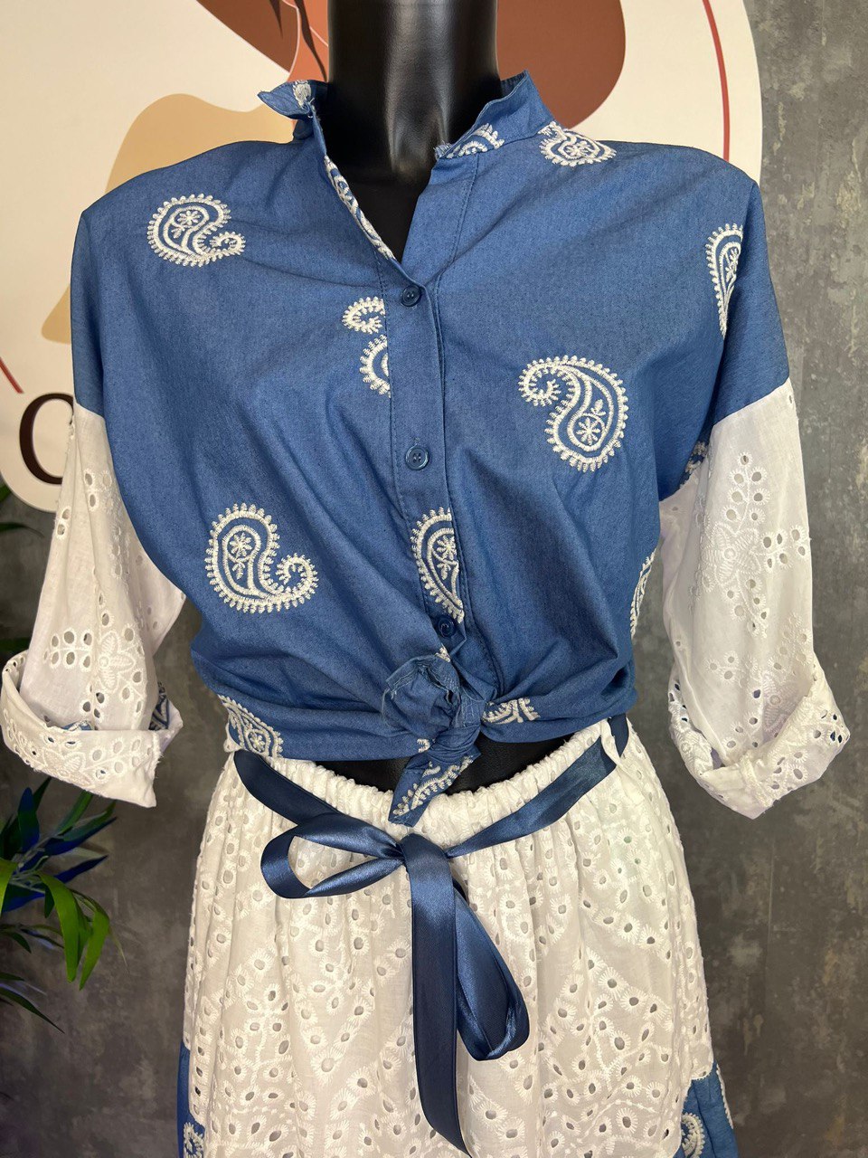 Completo 100% cotone con pizzo Sangallo Taglia Unica veste XS -L